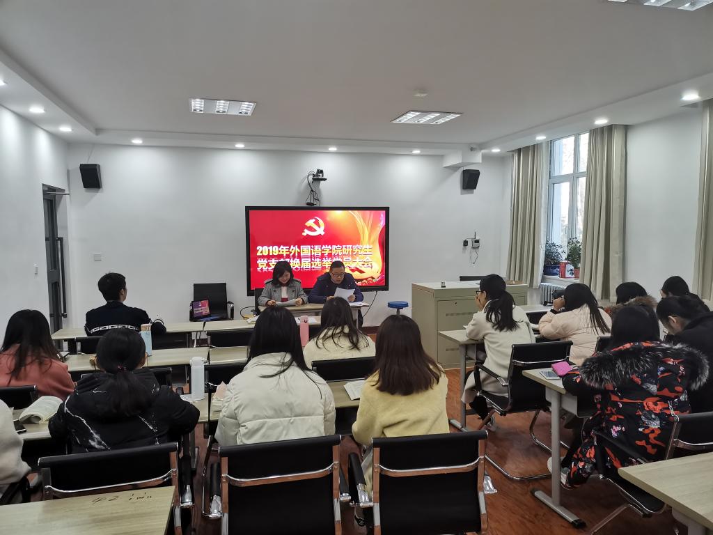 为进一步加强党支部建设,充分发挥党支部的政治核心作用和监督保证作用,根据《中国共产党章程》《中国共产党基层组织选举工作暂行条例》《中国共产党青海师范大学基层组织工作实施细则》等规定,按照青师党组字�2019�88号文件《关于做好基层党组织换届选举的通知》要求,11�29日下午,外国语学院研究党支部召开换届选举大会。会议由支部书记妥洪岩主持�