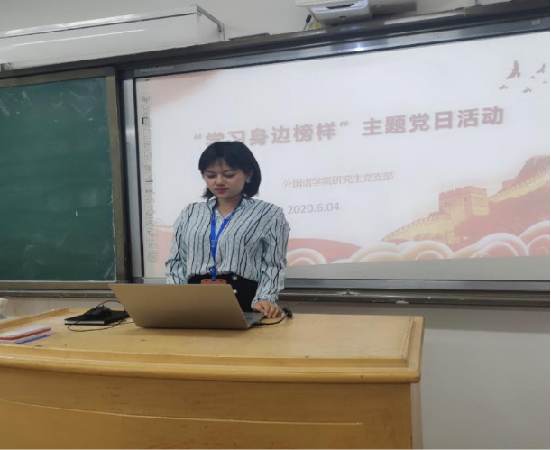 6�4�下午,外国语学院研究生党支�开��学习身边的榜��主题党日活动�支部全体党员参加活动�支部书记籍天璐同志主持会议�