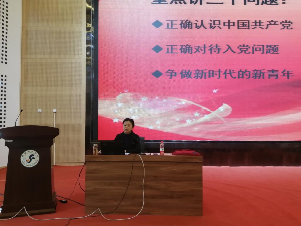 讲座中,秦燕鸣围绕“正确认识中国共产党、正确对待入党问题、争做新时代的新青年”三个方面,详细介绍了党的性质、党的指导思想、党的宗旨和纪律、最高理想及现阶段的任务,重点阐述了端正入党动机的内涵和途径,教育引导广大学生争做新时代的新青年。她结合生动的案例和故事,图文并茂的梳理了党史党情,回顾了改革开放以来我国经济、社会取得的巨大成就,分享了党员模范先进事迹和抗疫故事,让在场的学生感受到了中国共产党领导和中国特色社会主义制度的优越性�