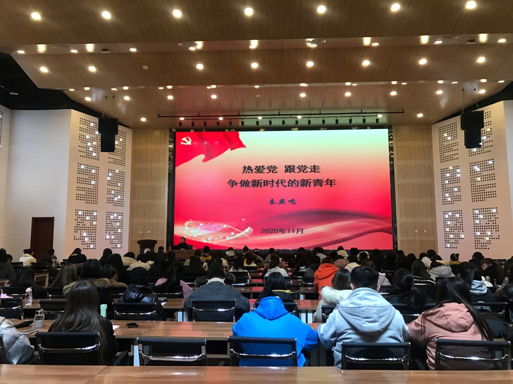 12�2日下午,校党委常委、纪委书记秦燕鸣以“热爱党、跟党走,争做新时代的新青年”为题,在图书馆报告厅为外国语学院全体学生党员、党员发展对象、入党积极分子和2020级学生讲授了一堂精彩的党课�