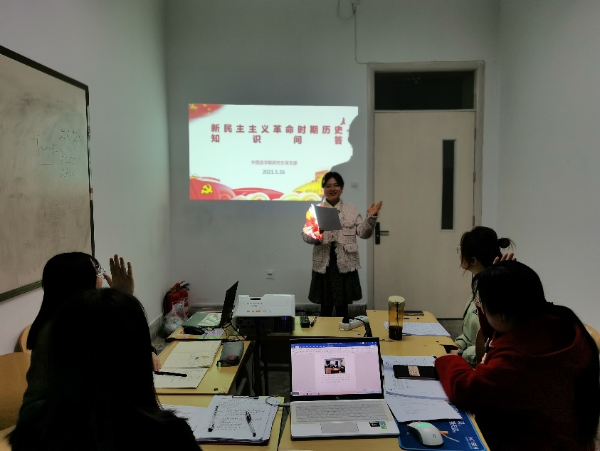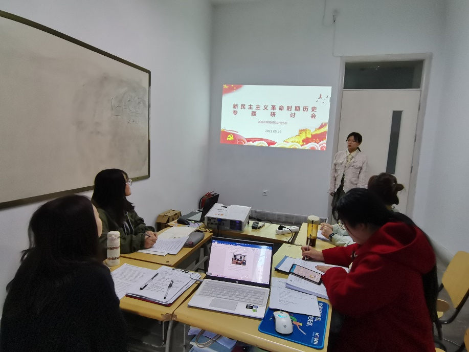 5�26日,外国语学院研究生党支部开展了新民主主义革命时期历史专题学习研讨会。支部书记籍天璐同志主持学习�