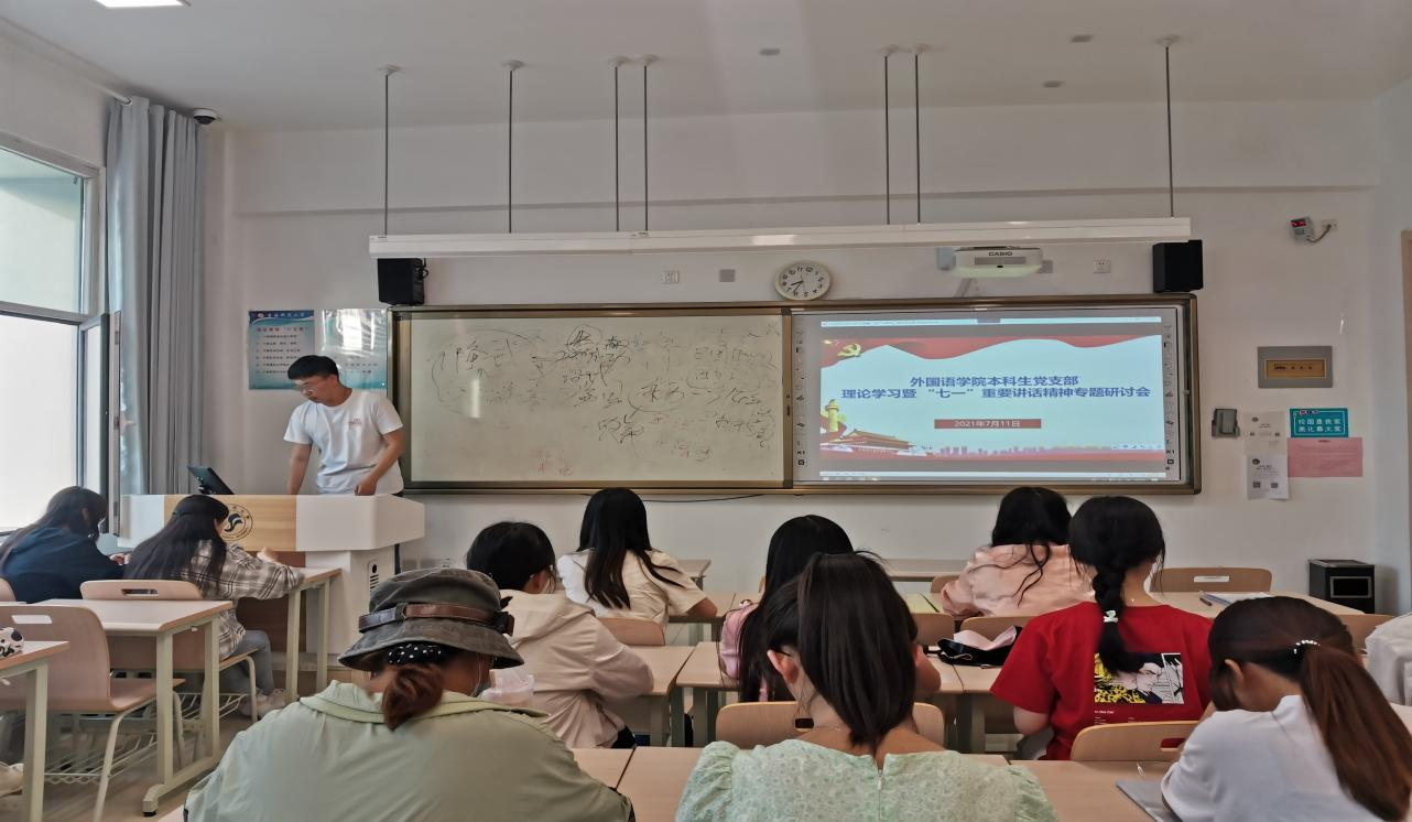 为了继续深入学习习近平新时代中国特色社会主义思想和“七一”重要讲话精神,为党史学习教育专题组织生活会打下思想基础�7�11日晚,外国语学院本科生党支部召开党史学习教育专题组织生活会会前学习暨学习贯彻“七一”重要讲话精神专题研讨会�
