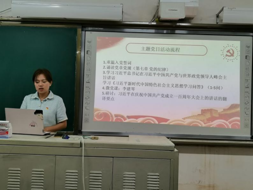 其次,李建琴同志做了《峥嵘百年光辉历程》的微党课,这使全体党员更加了解党波澜壮阔的百年征程和历久弥新的百年初心,也更加坚定了我们面临新的严峻挑战也要坚定不移地走中国特色社会主义道路的决心与勇气和为中华民族谋复兴的初心使命�