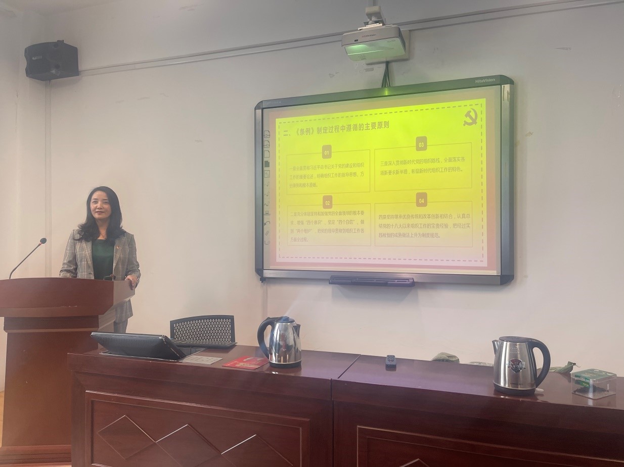随后,马金芳书记以党课的形式给党员教师们讲解了《中国共产党组织工作条例》产生的背景,具体条文和现实意义。党员教师们认识到《条例》出台,对于坚持和加强党对组织工作的全面领导、深入贯彻新时代党的组织路线、推进组织工作科学化制度化规范化、全面提高组织工作质量,具有重要意义。接下来,籍天璐同志领学了《中国共产党普通高等学校基层组织工作条例》。党员老师们表示坚守为党育人、为国育才,培养德智体美劳全面发展的社会主义建设者和接班人。最后,马金芳书记做新学期学院党建工作部署安排和要求。指出本学期党建工作围绕习近平总书记在七一重要讲话精神及全国高校党建视频会议精神为重点围绕,以三会一课、主题党日、组织生活与民主生活会、师生党员结对、党员干部与党员结对等形式,认真学习党的基本理论、严格党员发展与教育工作、持续推进样板党支部建设、加强党风廉政建设等工作。要求党建工作要结合学院重点工作,如师范认证、学院师生发展、师资队伍建设、人才培养、对口支援等方面开展,避免“两张皮”;要以师生党员结对为抓手,创新学院党建工作思路,干出学院党建工作特色,同时持续推进“我为群众办实事”活动�
