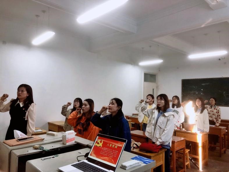 籍天璐同志首先表达了党总支及研究生党支部对新生党员同志的热烈欢迎,随后带领全体党员重温了入党誓词。接着,集体诵读了党章党规中党员第一章,重申党员权利与义务,深刻牢记中国共产党党员永远是劳动人民的普通一员,必须全心全意为人民服务。大家情绪高涨,纷纷表示作为一名研究生党员,今后需更加努力学习,积极回馈社会,在学习和社会生活中起先锋模范作用�