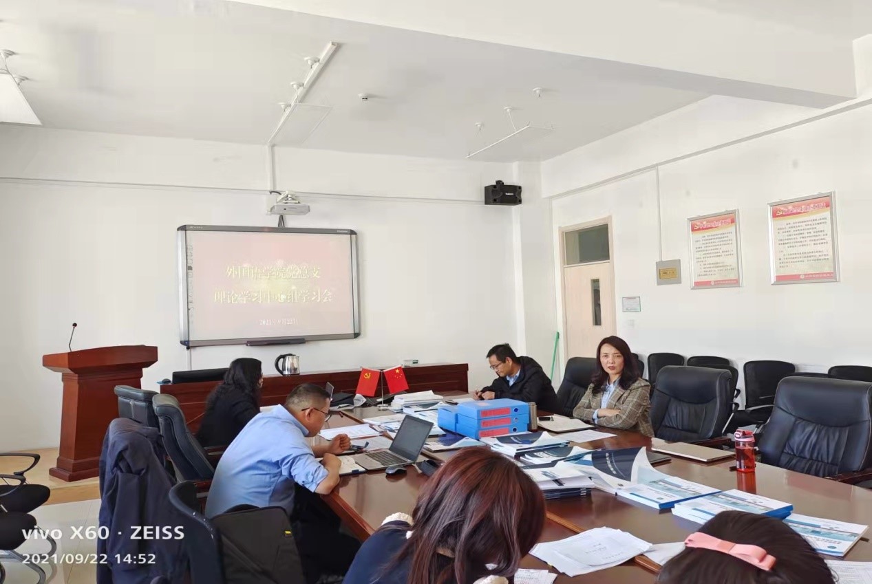 9�22日下午,外国语学院召开党总支理论学习中心组学习会议。学院党总支委员、各党支部书记、党小组组长参加会议。会议由党总支书记马金芳主持�