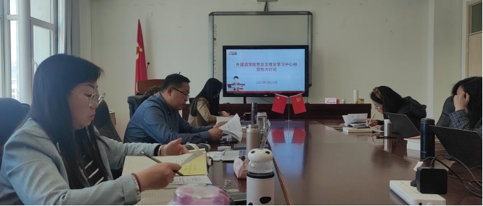 5�29日,外国语学院教工党支部举行学习贯彻习近平新时代中国特色社会主义思想主题教育党性大讨论。会议由支部书记妥洪岩主持,全体支部党员参加了研讨交流�
