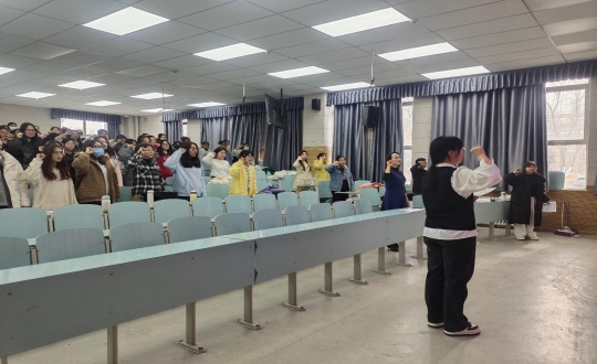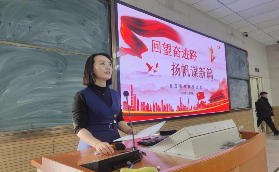 为进一步巩固深化学习贯彻习近平新时代中国特色社会主义思想主题教育,铭记光辉历史,传承红色基因�12�13日,外国语学院在东二楼F107开展以“回望奋进路,扬帆谋新篇”红色观影为主题的主题党日联合活动。学院教工党支部、研究生党支部和本科生党支部所有党员以及积极分子集体观看了红色爱国电影《三湾改编》�
