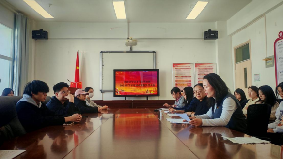 2025年12月17日,外国语学院本科生党支部于东二楼408会议室召开会议,讨论接收万乐乐等10名同志为中共预备党员事宜。此次会议采用线上与线下相结合的形式开展,全体正式党员、预备党员和发展对象均参与其中,由本科生党支部书记巩鲜妮担任主持。