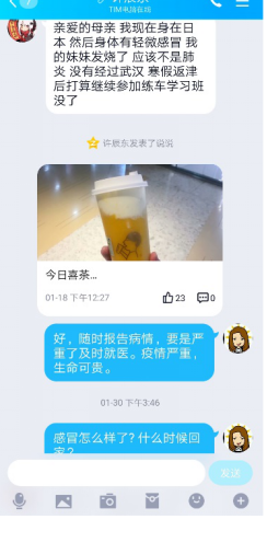 王芳,女,外国语学院19级翻译班班主任,也是班级44名同学心中亲切的“王妈妈”。在疫情防控期间,她事无巨细,认真做好各项数据统计数据,每天关注同学们的动态,了解他们的生活和心理状况�1�26日,当了解到班上一名同学在日本旅行,并且家人有轻微感冒症状时,她当即联系学生了解详细情况,并通过微信、qq及电话等多种途径,持续关注该生及家人的身体状况和行程安排,叮嘱学生做好各项防护,一直到学生安全返家�2�13日,班上一名同学全家被隔离,她第一时间打电话了解详细情况,安抚学生的焦虑情绪,向该同学宣讲隔离期间注意事项,询问生活物资保证等问题,并及时向院系做好报备工作,目前该生已解除隔离�2�19日,班上一名河南籍学生出现低烧症状,她在详细地了解了该生的出行轨迹和当地的医疗情况后,先是安抚了学生的恐惧心理,并指导该生寻求医生的建议和帮助,分时段量报体温,遵医嘱服用药物。两天后,学生的体温恢复了正常,“王妈妈”悬着的一颗心才终于落下�