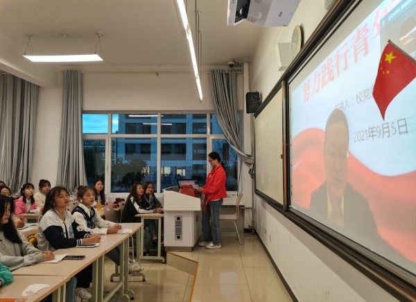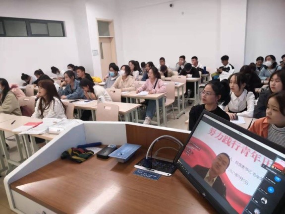9�5日组织全体学生进入“腾讯会议”观看由校党委书记毛学荣以《努力践行青年历史使命》为题的思政线上课程,在线上课程中毛书记向我们详细介绍了中国共产党百年的奋斗历史,详细地讲解了毛泽东思想、邓小平理论以及马克思主义中国化的进程,他深入浅出的讲述,使同学们对党史有了深刻的了解。他指出,疫情下共产党的做法,是为每位大学生做的表率,值得我们所有人去学习,相信这次疫情会使同学们深刻体会到中国共产党的制度优势。随后,毛书记高度评价了马克思主义的价值,并引导同学们要做马克思主义的传承者和践行者。最后,毛书记呼吁我们青年大学生要始终坚持党的领导,进一步坚定“听党话、跟党走”的信念,努力做一名中国特色社会主义的建设者和接班人。本次团课内容同学们感触颇深,大家纷纷认为,身为青年学生,我们无论在何时都要努力学习、奋发进取、砥砺前行,为实现中华民族伟大复兴的中国梦而努力奋斗�