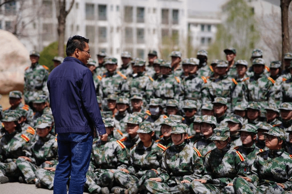 20234月14日、19日,青海师范大学外国语学院院长李增垠、副院长妥洪岩、辅导员殷春兰、乔祥山、巩鲜妮及2021级、2022级班主任一行来到西操场训练场,看望慰问军训中的学生。