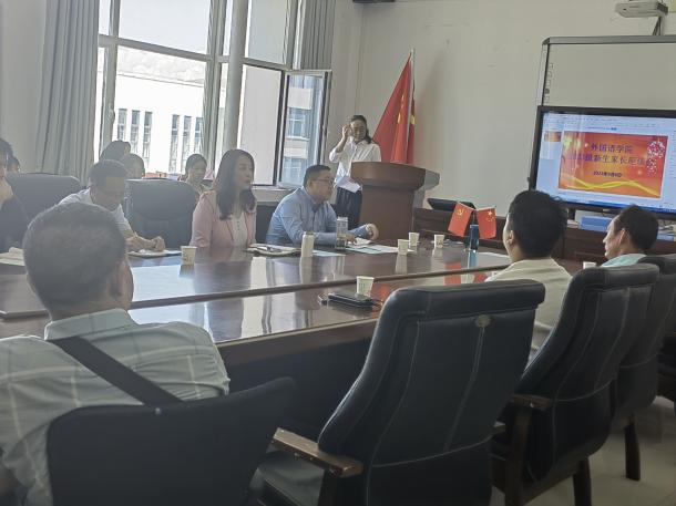 为进一步搭建家校沟通桥梁,凝聚家校育人合力,提升家校共育实效,9月6日,外国语学院在东二楼408会议室召开2023级新生家长见面会。学院党总支书记马金芳书记、妥洪岩副院长、全体辅导员,新生班主任裴正华等老师参加会议。会议由辅导员老师殷春兰主持。