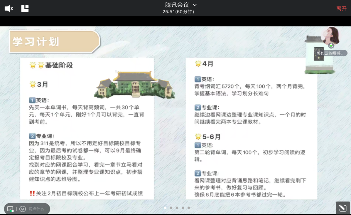 此次考研经验分享会旨在为考研学子们搭建交流和沟通的便利平台,通过解答同学们关心的考研问题,为大家提供丰富的经验,确保同学们实现高效率学习。大势之争,非优即汰,崛起之时,不进则退。希望同学们能少一点“雪拥蓝关马不前”的踌躇,多一点“风卷红旗过大关”的勇气,从来时的路上积攒能量,在考研的路上成功上岸。