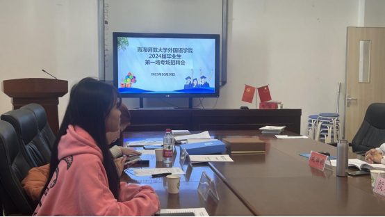 为进一步保障学生就业,给学生提供更多就业机会,外国语学院于2023年10月20日14:30在东二楼408会议室举办了2024届第一场专场招聘会。本次会议由辅导员巩鲜妮老师主持,辅导员殷春兰老师、金吉列出国留学咨询服务有限公司西宁分公司人事经理曾畅、留学顾问经理褚吉鸿、市场部经理王佩和2020级全体在校毕业生均参加了这次会议。本次活动非常荣幸地邀请到了金吉列出国留学咨询服务有限公司西宁分公司的几位负责人组织招聘。