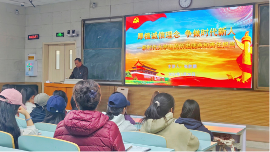 课堂上,张胜鹏紧扣党的二十大报告指出的“完善覆盖全学段学生资助体系”和习近平总书记对青年的寄语,围绕加强高校资助育人体系中的诚信教育、新时代大学生的历史使命和责任担当两个方面,结合自己学习工作实际,带领学生认识诚信、了解学校资助政策、开展诚信教育,帮助贫困生树立诚信、感恩、自立自强的思想观念,教育引导学生要立足当下,树立正确的理想信念、练就过硬的专业本领、培养良好的道德情操、参与广泛的社会实践,做有理想、敢担当、能吃苦、肯奋斗的新时代好青年。