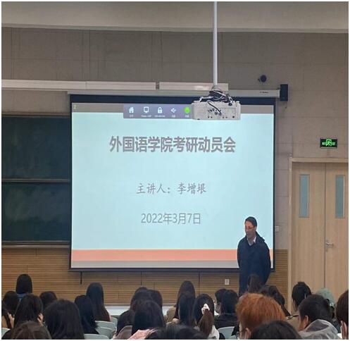 为更好地调动外国语学院学生考研积极性,帮助学生确立考研目标,增强学生考研信心,坚定学生考研决心,提高我院学生考研通过率。我院于202237日上午900在东20103教室召开2022年考研动员大会。本次大会由外国语学院辅导员殷春兰主持,李增垠院长主讲。