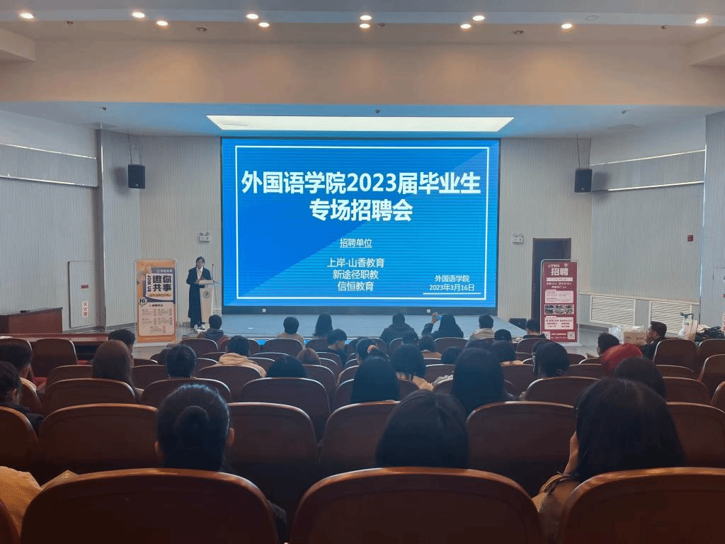 又是一年毕业季来临,为促进高校毕业生落实就业问题、助力企业人才的招聘工作,青海师范大学外国语学院在2023年3月16日下午在学校科技馆报告厅为外院的学子们设立了专门的招聘会讲座,其中马金芳书记和殷春兰老师也到场参与并给学生提供就业方面的指导,此次招聘会旨在推进企业和求职者双向互选,以帮助外院应届毕业生尽快落实好就业问题。