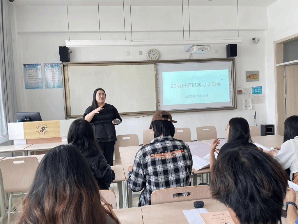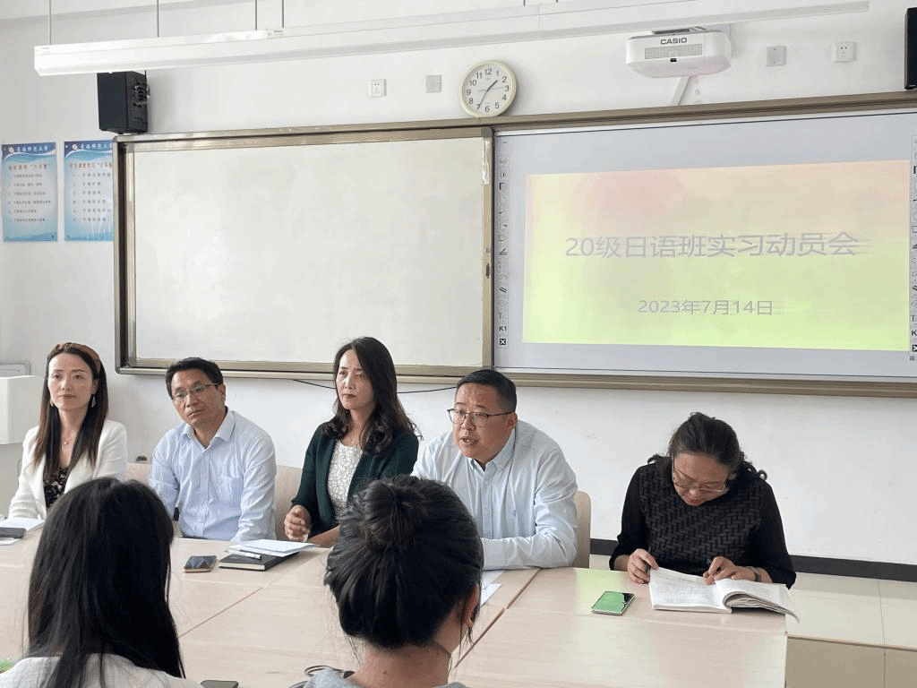 引导学生做好实习前的各项准备,推进实习工作的顺利开展,7月14日学院召开20级日语专业实习动员会。动员会由20级日语班班主任张媛老师主持,学院书记马金芳、院长李增垠、副院长妥洪岩、辅导员殷春兰老师和巩鲜妮老师,以及20级日语班全体学生参加了此次动员会。