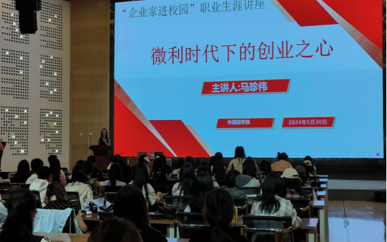 530日,外国语学院邀请青海伟一投资管理集团董事长马珍伟开展“企业家进校园”职业生涯讲座。学院全体本科生及辅导员参加讲座。
