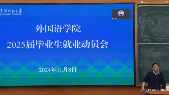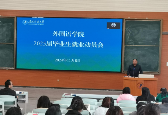 118日,外国语学院召开2025届毕业生就业动员会,学院领导班子、专业负责人、毕业班班主任、辅导员、优秀毕业生代表及2025届全体本科毕业生参加会议。