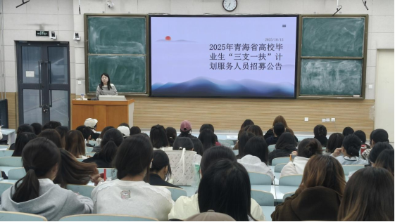 讲座伊始,授课老师围绕青海省三支一扶招募、省考国考以及相关事业单位招聘要求展开详细讲解与专业指导。随后系统梳理了以大学生村官、西部计划、特聘教师、三支一扶、退伍大学生为代表的五大基层服务定向岗位,并扩展到选调生项目及教师招聘考试的整体概况。从政策背景、招录规模到发展趋势,为在场学生构建了清晰的宏观认知框架。针对定向岗位、选调生考试等同学们重点关注的内容,授课老师进行了深入剖析,从报考条件、考试内容到备考策略,一一为同学们答疑解惑。随后的互动环节,同学们积极提问踊跃发言,提出了关于就业方向、备考技巧等方面的疑问,老师耐心倾听,并结合自身经验和实际案例,为同学们提供了切实可行的建议和解决方案。