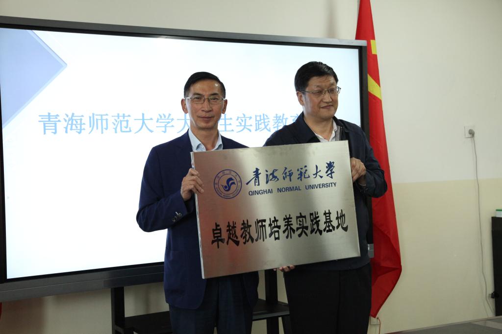 在校领导、院领导、卓越教师项目团队的共同努力下,7�17日下午,青海师范大学与西宁市虎台中学、虎台小学、第七中学在虎台中学逸夫教学楼成功地举行了卓越教师培养实践基地签约授牌仪式。虎台中学校长薛伟平、虎台小学校长刘戈、西宁市第七中学副校长张玉清、冯远宇和教师代表,我校副校长冶成福、外国语学院、教务处相关负责人等一行六人一同参加签约暨授牌仪式�