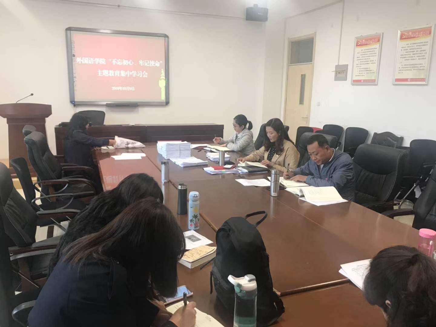 10�9日下午,外国语学院党总支举行“不忘初心、牢记使命”主题教育第二次集中学习会,党总支委员、支部书记及部分教工党员参加会议。会议由党总支书记兼院长马金芳主持�