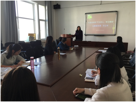 为深入学习贯彻党的十九届四中全会精神,进一步深化“不忘初心、牢记使命”主题教育,坚定理想信念,振奋民族精神,激励全体党员干部继承和发扬党的优良传统和作风,11�13日下午,外国语学院教工党支部开展了以“新时代爱国主义教育”为主题的党日活动�