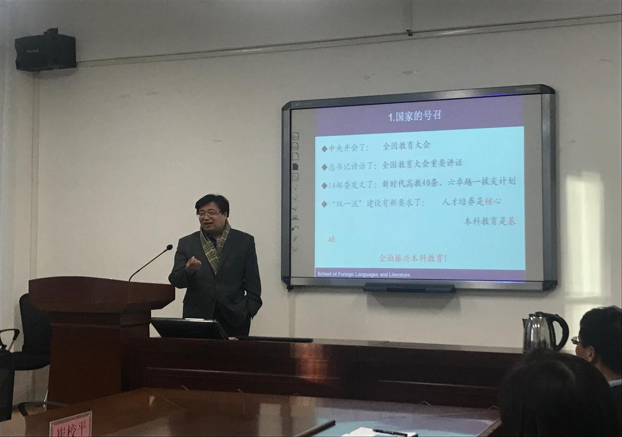 目前,我校的大学英语教学改革进入了攻坚期,大学英语教学改革面临着新的问题和新的挑战。双方就如何提高大学英语教学效果进行了充分交流。我院大学英语教研室主任佘立华首先介绍了我校大学英语教学的现状、存在的问题及本年度实施的大学英语教学改革工作的进展情况。山东大学外国语学院崔校平副院长通过做题为“有效课堂教学是打造大学英语‘金课’的关键”的讲座,从宏观和微观两个层面,对我院大学英语教学面临的困难和问题提出了建设性意见,他指出大学英语教师必须更新教学理念,改善知识结构,增强教学能力,不断改进教学内容和教学方法,全体教师受益匪浅�