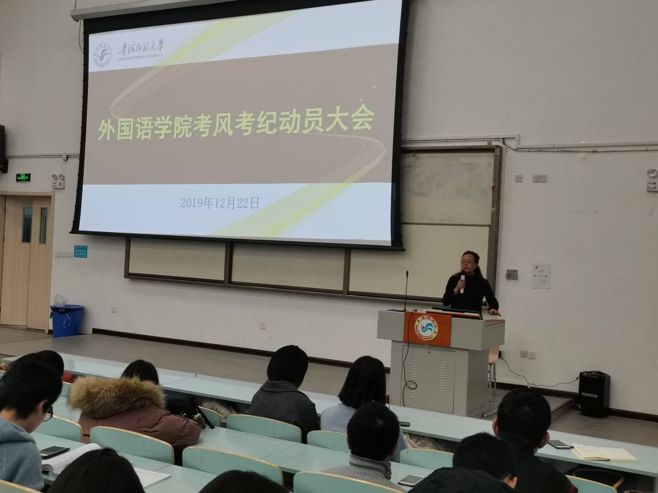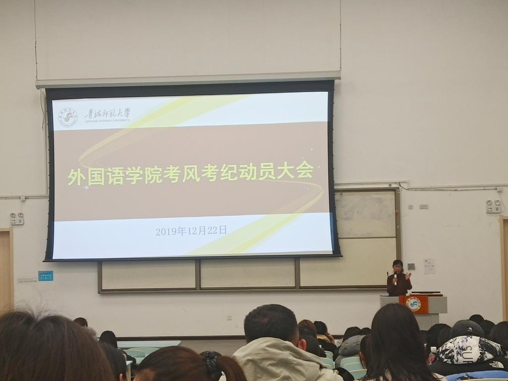 12�23日,外国语学院在东二楼F101教室召开� “诚信考试”考风考纪动员大会,全�370余名学生参加了会议。会议由辅导员贾海英主持�