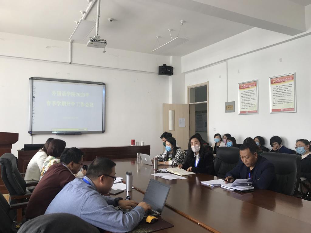 为确保开学工作平稳推进、有序进行,保障广大师生身体健康�4�22日下午,外国语学院召开全体教职工会议,安排部署2020年春季返校开学工作,会议由院党总支书记、院长马金芳主持�