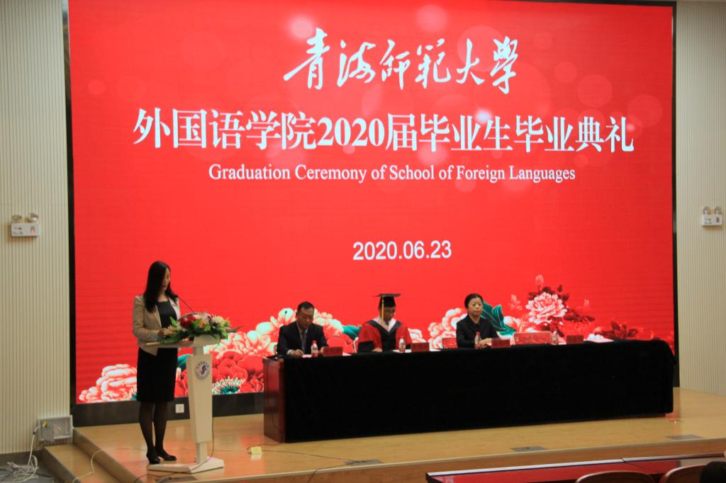 典礼上,毕业班班主任吉先才让老师用英文表达了对同学们的眷恋之情,希望大家坚守道德责任,不断攀登,以优异的成绩回报母校,回报家庭,回报社会。毕业研究生代表崔殿哲和本科毕业生代表王璐冉相继发言,表达了对母校、老师的崇高敬意和感激之情,分享了在校期间的学习生活和难忘经历,表示在新的起点,新的征程中会感恩前行,砥砺奋进,不负韶华。