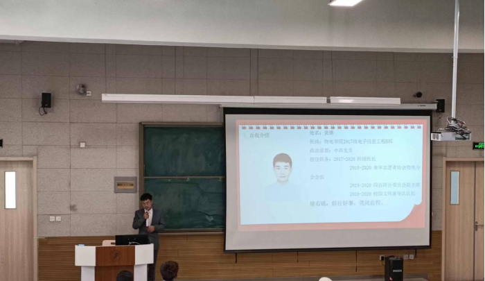 首先,黄璐同学向大家介绍了自己在学习及科研方面取得的各项成果,并简单介绍了自己的学习经历。他的座右铭是“但行好事,莫问前程”,这让他在确立了自己的目标之后能够脚踏实地苦心钻研。此外,兴趣爱好在他的生活中同样重要。音乐、篮球、极限运动这些活动让他在享受生活的同时锤炼了自己的精神,用于在未知的道路上探索一切不可能�