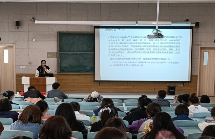 司宜玮同学向大家介绍了国家奖学金的规模及评选资格,让同学们了解到国家奖学金的申请流程等。她建议同学们要及时确立自己的未来目标,埋头苦干的同时也要尽量多接触外面的世界,开阔自己的眼界,抓住机会,在各种社会生活实践活动中提高自己的社交能力和情商。司宜玮同学也向大家分享了自己的学习方法和经验,她鼓励同学们独立学习,有目的地完成各项学习任务,充分发掘多种途径报名参加考试,在一次次的尝试中磨炼自己�