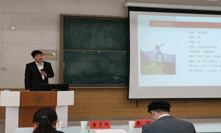 唐宇辉同学在宣讲中倡导同学们要珍惜时间,不放弃每一次机会,在有限的大学时光里不要沉迷网络,应该在各种活动中充实自己,体验生活。他建议同学们在空余时间多参加体育锻炼,假期去不同的地方旅行,在不一样的风土人情中体会生命的美好�
