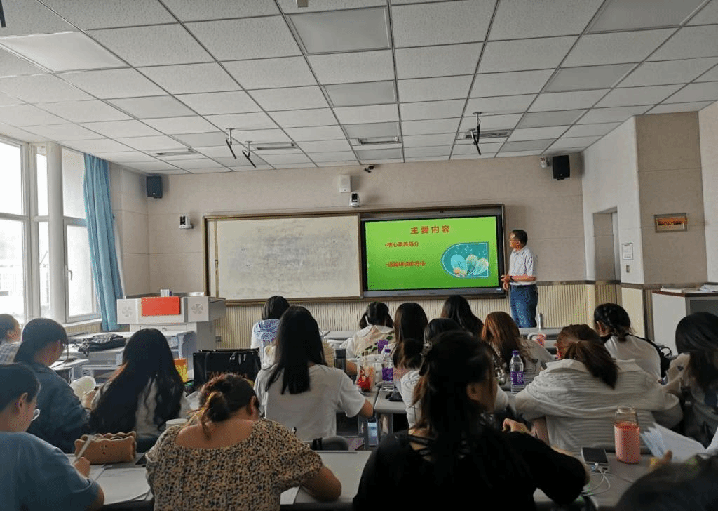 首先纳成仓教授就高中英语阅读教学中语篇研读的概念和方法进行指导培训,旨在培训学生理解什么是语篇研读以及如何进行语篇研读。培训之始,纳成仓教授对和核心素养进行解读,指出“英语核心素养包含语言能力,文化意识,思维品质以及学习能力,而这四要素之间,语言能力构成学科基础,文化意识体现价值取向,思维品质体现心智特征,学习能力构成发展条件”。随后对语篇研读的概念和方法进行解读:“教学中的语篇研读就是教师在进行教学世纪之前,对语篇的主题、内容、文体结构、语言特点、作者观点等进行深入的解读”。语篇解读要遵从“what(写了什么)”、“how(怎样写的)”和“why(为什么写)”三步走。然后以人教版高中英语必修一Unit 4 A Night the Earth Didn’t sleep为例详细阐释如何运用三步走方法对一篇高中阅读课文进行详细恰当的解读。最后纳成仓教授寄语全体研究生要深刻把握主题语境,将所学恰到好处的运用到教学实践岗位当中,争取成为一名优秀的一线教师,在教学岗位上发光发热。