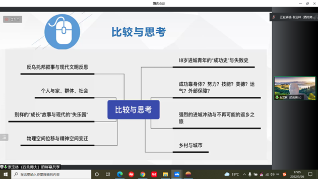 2022å¹�5æœ�26日下å�2:30—â€�5:30,西北师范大å¦å¤–国è¯å¦é™¢å¼ 宿ž—教授为我院师生åšäº†é¢˜ä¸º “ä¸ç¾ŽçŽ°ä»£æ–‡å¦ä¸çš„乡下人‘进城’故事â€çš„讲座——以《嘉莉妹妹》和《骆驼祥å》为例â€çš„è®²åº§ã€‚å¼ å®æž—æ•™æŽˆç”¨â€œæ–‡å¦æ˜¯äººå¦â€å¼•入,é˜é‡Šæ–‡å¦å²æ˜¯ç²¾ç¥žå²å’Œå¿ƒçµå²ã€‚进城ä¸ä»…是从农æ‘到城市的物ç†ç©ºé—´è½¬ç§»ï¼Œæ›´æ˜¯äººè‡ªèº«å¿ƒçµçš„å˜åŒ–ã€‚è¿›åŸŽçš„åŽŸå› ä¸»è¦æ˜¯åŸŽå¸‚çš„å¸å¼•力和农æ‘的推动力。城市出现,是人努力的结果,城市也在潜移默化地归è®ç€äººï¼Œè¿™æ˜¯ä¸€ä¸ªåŒå‘建构过程ã€�