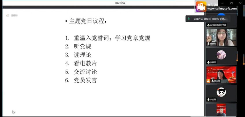 本次会议采用了中英双语形式,都老师希望大家能够多多积累知识,提高语言能力,并对党员同志提出更高的要求。全体党员同志要带头做好榜样示范作用,学习百年党史中增强历史自觉,勇于战胜各种风险挑战。在现代化高速发展的21世纪,党员同志们需具有全球意识和全球视野,在工作、学习和生活中持有一种开放包容的意识,在爱党爱国的道路上砥砺前行�