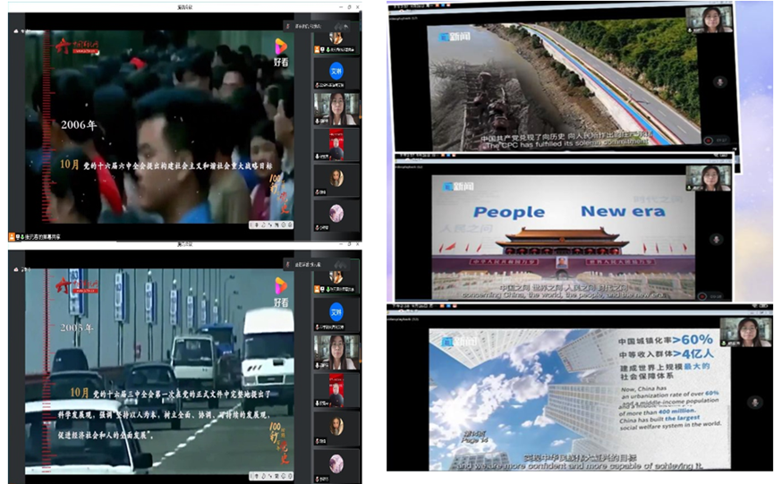 会议第四项是全体参会党员观看电教片。都老师带领党员同志们结合视频回顾了党的百年奋斗征程。千年梦想,百年奋斗,圆在今朝。从一百年前的衰败凋零到今天的欣欣向荣,中华民族正以不可阻挡的步伐迈向伟大复兴�