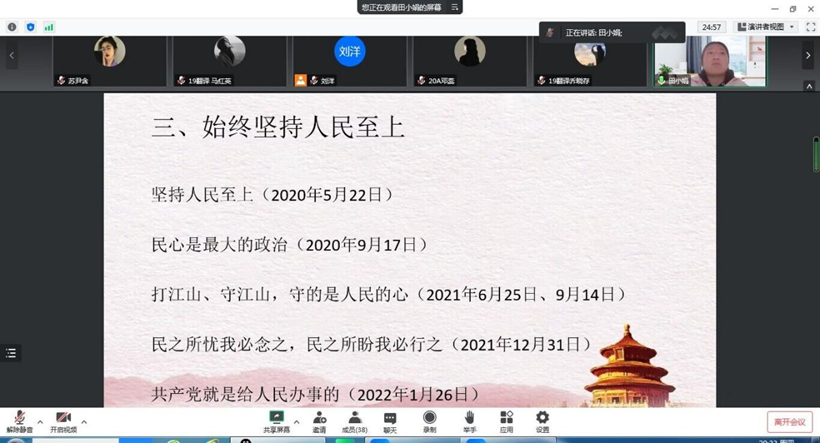 12�29日,外国语学院本科生党支部在线上举行了十二月主题党日活动,由刘洋老师主持。本次党日活动主要围绕党的二十大原文进行专题学习和研讨交流�