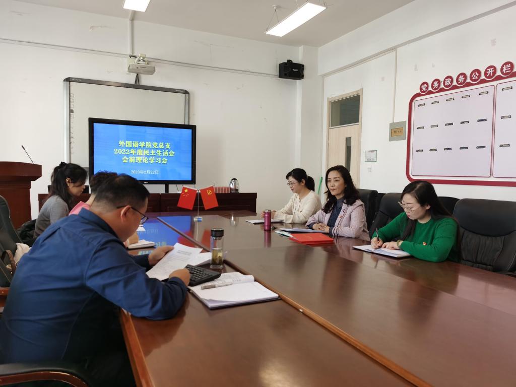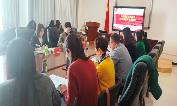 2�24日下午,外国语学院党总支召开2022年度民主生活会。会议由党总支书记马金芳主持,学院党总支委员、支部书记和教职工代表参会。校党委第三督导组组长、校党委组织部副部长、统战部部长鞠晓英和督导组成员马丹羽老师莅会指导�
