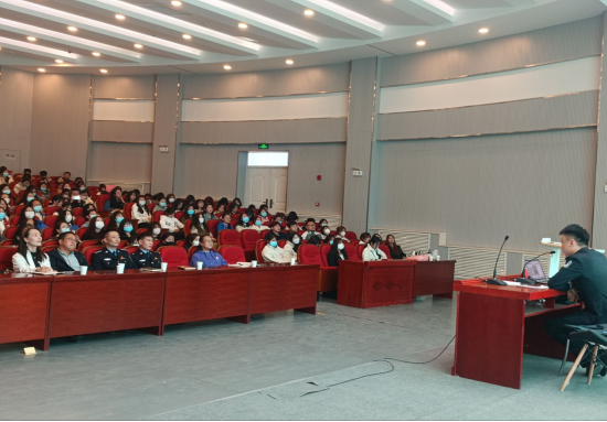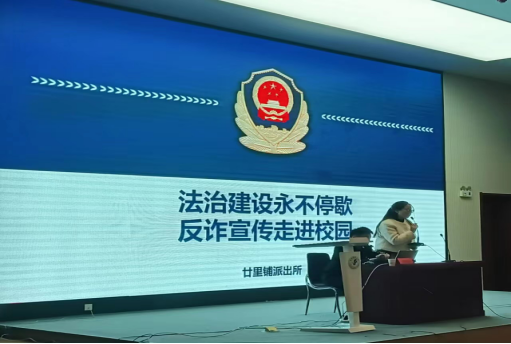 为进一步增强学生安全防范意识,有效遏制诈骗案件的发生率�2023�3�9日,由外国语学院主办的“网络安全教育”宣传讲座在我校科技馆报告厅举行。本次讲座由西宁市城北区廿里铺镇派出所孙青云所长、李成林副所长、李海波警官等一行四人参会,由李海波警官主讲,外国语学院副院长妥洪岩副教授,辅导员殷春兰、巩鲜妮老师,学生代�300余人聆听了讲座,讲座由外国语学院学生会主席王志英主持�