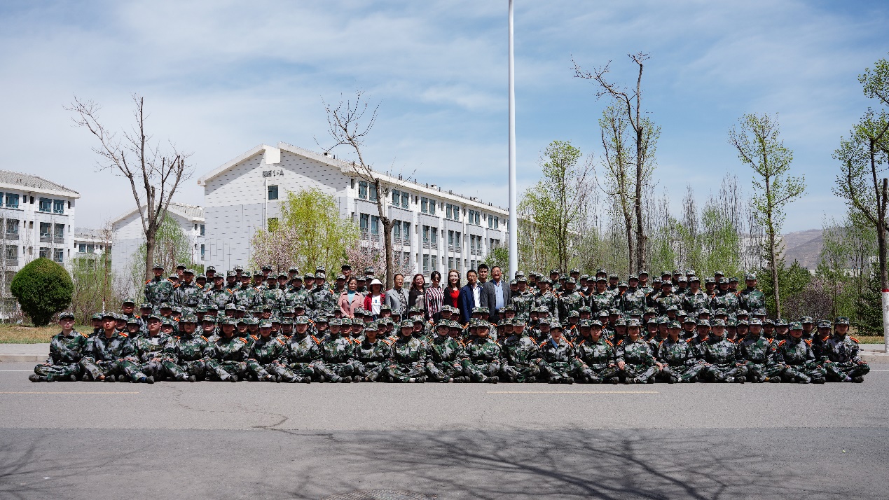 2023�4�14日�19日,青海师范大学外国语学院院长李增垠、副院长妥洪岩、辅导员殷春兰、乔祥山、巩鲜妮�2021级�2022级班主任一行来到西操场训练场,看望慰问军训中的学生�