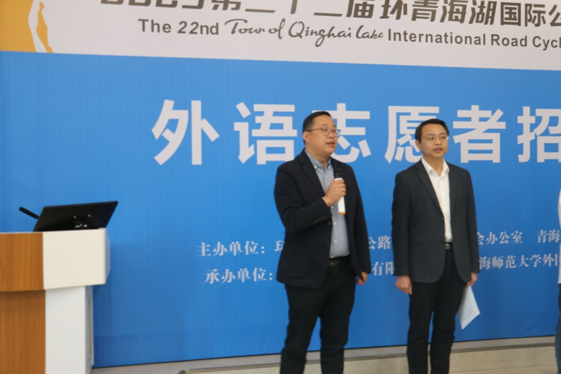 为更好地提高同学们的英语运用能力和社会实践能力,为同学们提供一个锻炼和展示自己能力的平台,经环青海湖国际公路自行车赛组委会办公和学院积极对接和沟通,5�5日下午,2023第二十三届环青海湖国际公路自行车外语志愿者招募选拔活动在外国语学院举行。环湖赛组委会办公室执行副主任、省体育赛事管理中心主任申铁军,外国语学院副院长妥洪岩,环湖赛组委会工作人员及学院近80名研究生、本科生参加此次招募活动�