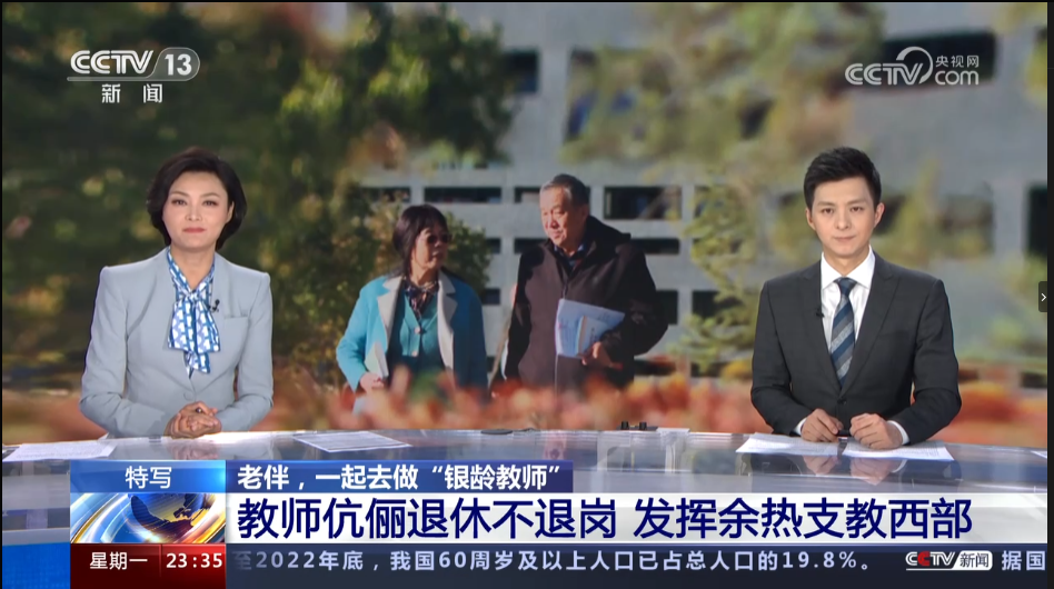 央视报道我院银龄教师发挥余热支教西部事迹。