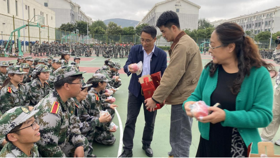 在中秋佳节来临之际,912日下午,外国语学院领导、辅导员、教师代表及学生会部分成员前往操场慰问军训中的2024级新生。