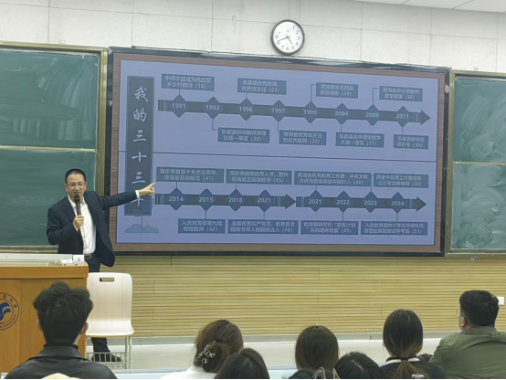 10月25日,外国语学院邀请海东市第一中学周全中校长为我院师生做题为“热爱燃梦想,专业铸尊严”卓越教师培训讲座,外国语学院院长助理韩青玉、22级和23级全体本科生聆听讲座讲座由学科教学教研室主任李霞主持