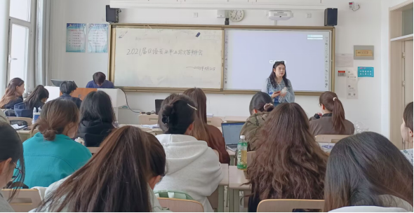 512日,我校外国语学院日语专业2025本科毕业生论文答辩于东二楼416414室顺利举行。答辩负责人张媛老师、张颖老师指导教师张琪戴竟刘海燕老师,以及31名日语专业学生参与答辩答辩以线下与线上相结合的方式进行,全程组织严谨、流程规范,充分展现了学生的学术研究能力与专业素养。为确保答辩顺利进行,班主任张琪老师对此次毕业论文答辩会的流程以及注意事项做出说明和提醒