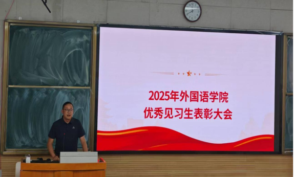 6 16 日,学院召开见习总结表彰大会。学院党委副书记妥洪岩在总结中指出,见习是大家从校园走向社会的重要过渡,是理论与实践相结合的关键环节。通过这次见习,同学们不仅将课堂所学知识运用到实际教学中,积累了宝贵的实践经验,还锻炼了自己的沟通能力、组织能力和应变能力。希望大家能够以此次见习为契机,总结经验,查找不足,不断提升自己的专业水平和综合素质。在今后的学习和生活中,继续保持积极向上的态度,努力成为有理想、有道德、有文化、有纪律的新时代外语人才。大会对褚延杰、田彦瑾钰等 20 余名优秀见习生进行表彰,通过树立标杆激发全体师范生专业成长动力。